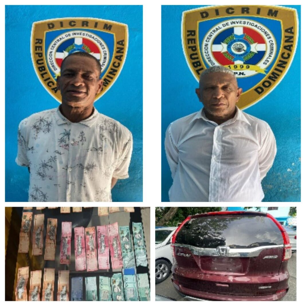 Los detenidos son Francisco Antonio Peña Martínez, de 56 años, y Isidoro Antonio Rodríguez Santos, de 59, quienes fueron interceptados a bordo de un jeep marca Honda, modelo CRV, color rojo vino, año 2015, placa G556388, frente a la Zona Franca de esa ciudad.