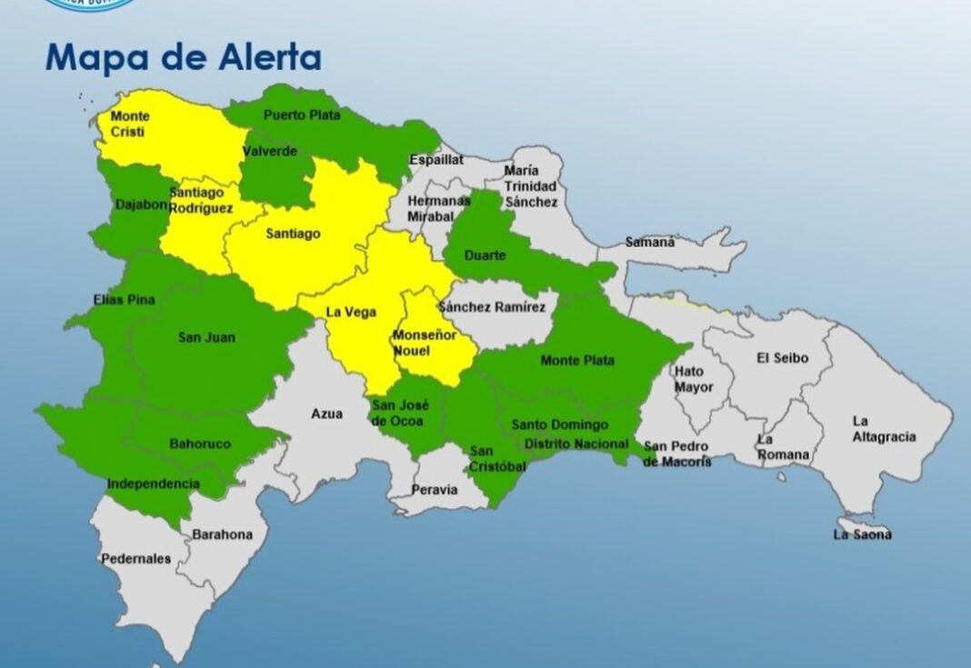 Las demarcaciones en alerta amarilla figuran: Monseñor Nouel, Santiago Rodríguez, Santiago, La Vega y Monte Cristi.