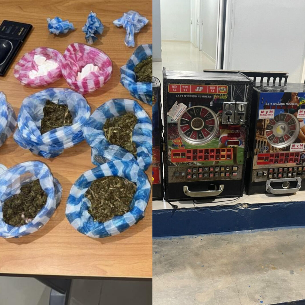 En otro operativo se cuparon porciones de un vegetal verde presuntamente marihuana, un polvo blanco cocaina, dos balanzas, dos teléfonos celulares, cigarrillos, dinero y equipos de sonido por alta contaminación sónica.