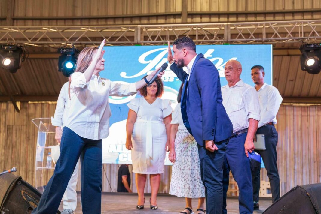 “Mi compromiso con los compañeros es que sientan que somos una sola gran familia, de personas buenas, trabajadoras y que nos queremos y respetamos”, aseguró Carolina al hablar ante cientos de perremeistas y dirigentes comunitarios y deportivos que asistieron al techado de La Satélite, donde la secretaria general juramentó en el PRM al empresario y dirigente comunitario de Santiago Oeste, Alexander Cuevas.